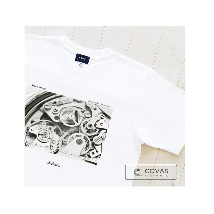 ”スケルトン時計” 精密時計の一大産地スイス。 スケルトンウオッチの美しい構造が、 その技術の高さを分かりやすく見せてくれますね。 綿100% 6.2オンス・ヘビーウエイト天竺生地・コーマ糸使用 プリント方法:ダイレクトインクジェットプリント ★ワンランク上の品質★ ホワイトTシャツは透け感や肌着っぽさを無くするために、 他社でよくある5.6オンスのヘビーウエイト生地ではなく、 ワンランク上の高品質でしっかりした6.2オンス・コーマ糸生地を使用。 衿リブは洗濯を繰り返しても伸びないしっかりした作りになっています。 【XS】 身丈56 身幅42 肩幅38 袖丈15cm  女性小さめ 【S】 身丈62 身幅46 肩幅42 袖丈18cm  女性標準〜大きめ、男性小さめ 【M】 身丈67 身幅51 肩幅47 袖丈21cm  男性標準 【L】 身丈70 身幅55 肩幅50 袖丈22cm  男性大きめ 【XL】 身丈73 身幅58 肩幅54 袖丈23cm  男性特大 ※サイズ表記はメンズサイズの表記になっています。 商品キーワード: 時計 ウオッチ スケルトン 白黒 モノクロ フォトプリント 写真 フォト フォトTシャツ  Tシャツ Tシャツ ティーシャツ メンズ レディース メンズTシャツ レディースTシャツ 大人 ユニセックス 男女兼用 男性 女性 トップス カットソー 半袖カットソー 半袖Tシャツ 半袖T 半袖 カジュアル プレゼント 父の日 クルーネック デザイン デザインTシャツ イラスト イラストTシャツ グラフィック グラフィックTシャツ プリント プリントTシャツ 綿 コットン 綿100% ヘビーウエイト 雑貨店 厚手 人気 おすすめ 数量限定 XS SS LL XL Tシャツブランド コバス コバスグラフィック COVAS GRAPHIC COVASGRAPHIC
