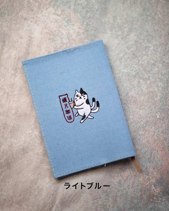 文庫サイズ 猫又 刺繍 名入れ可能 ブックカバー honok ライトブルー
