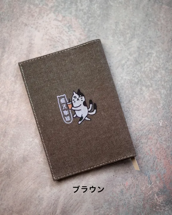 文庫サイズ 猫又 刺繍 名入れ可能 ブックカバー honok ブラウン