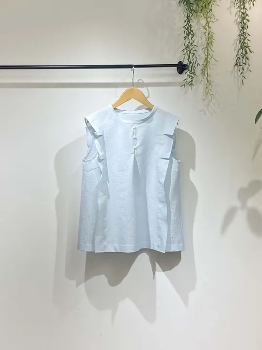 首元をシャープに見せてくれるスクエアネックのノースリーブブラウス。 カジュアルな素材感とボックスシルエットで普段使いしやすい1着です。 リヨセル麻にポリエステルをブレンドした機能的な夏の天然素材です。 適度なハリコシをもち、麻ならではのネップや表面感が特徴です。