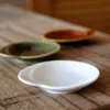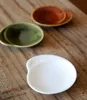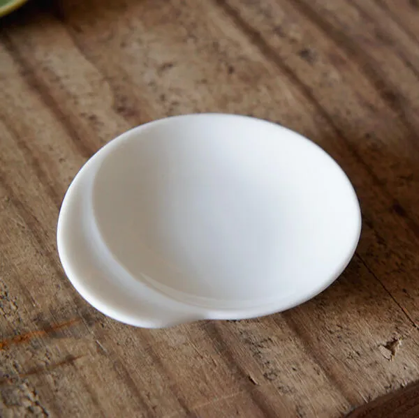 手に取る、箸を置く・・・。三日月形のリムが普段使いのしぐさに溶け込みます。ありそうでなかったこのカタチ。ほんの少し盛りつけしたいときは、手のひらサイズの豆皿として。つまみがあり手に取りやすいです。お刺身の千代口箸置としてもお使いください。
