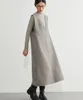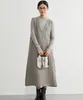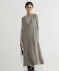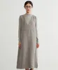 KNGT624・小紋柄風ジャカード織りVネックジャンパースカートポケット付き GRAY-M