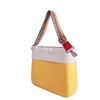 ◆身に着けるだけで元気をチャージしてくれそうな黄水仙カラーに、異国な香りが漂うカラフルなショルダーストラップを付けたマルチカラーバッグ。開口部の周りのカバーとインナーバックはシンプルで、<br>内ポケットにコスメを収納出来ます。  ■構成部品 Frame:Daffodil  Canvas Strap : Colorama  Plastic Twists: Cream Alma In-Bag: Cream Frou-Frou : Ivory