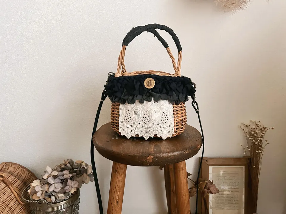 toromeco商品の中でも人気の裂き編みフリンジアレンジを施したアラログかごバッグです。 かごバッグの中でも人気素材の「アラログ」は天然のラタンの一種。フィリピン原産のラタン(籐)を、表皮を残したまま現地にて手作業で加工された希少価値の高いかごバッグです。 なんといっても丈夫さには定評がある上、蔓の太さの違い、色味、編み作業の手加減の個体差があり、それが一点もの的な価値観もあります。 かつアンティークのような豊かな風合いを感じることもでき、経年によるその変化は大変魅力的です。 本商品はそんなアラログの小ぶりなバッグを使い勝手の良いショルダータイプに仕立てました。 やわらかなコットンのふんわり裂き編みフリンジのアレンジに経年美が魅力のアンティークレースやアンティークボタンを合わせ、より希少価値を高めました。 小ぶりですが、コンパクトなサイズのお財布、スマートフォン、リップやハンドクリーム、ハンカチなど、最低限のお荷物はきちんと収まります。 アクセサリー感覚で装いに添えたいコンパクトで愛着のもてるデザインは日々の相棒としてもおすすめです。 イメージ画像は別ボタンの商品です。大きさ、雰囲気の参考にされてください。 モニター環境により実際の色味と若干異なる可能性がございます。ご了承ください。