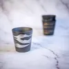 きめ細やかな黒土に金銀の釉薬が映える。 手仕事ならではの薄造りで、持ちやすさは抜群です。 職人の手によって一つ一つ柄杓でかける金銀の釉薬がそれぞれの商品に違った表情を醸し出します。