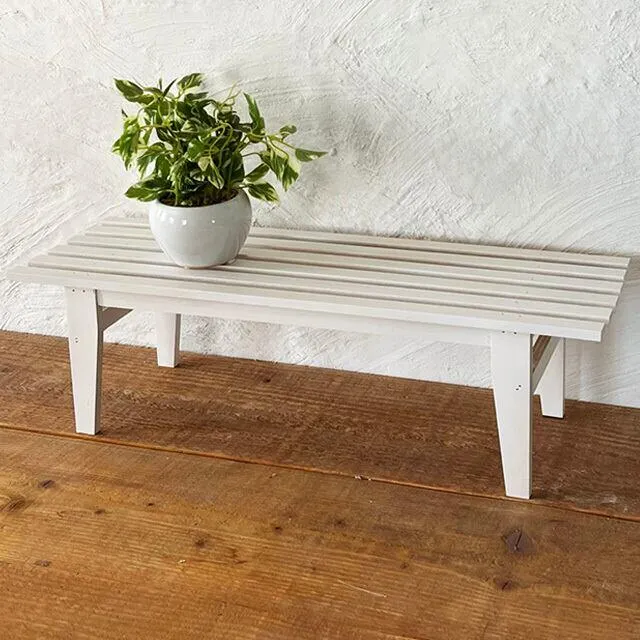 北海道 旭川市の自社工場で製作しています 小型のミニテーブルは観葉植物や ガーデン小物を飾るのにピッタリ。 ■商品サイズ 約 横幅450×奥行173×高さ132mm (板の厚みなどで、多少の誤差が出る場合があります) ■材質 合板使用 木目、色合いなどが1つ1つ違います。 平らな場所でご使用ください。 本製品はディスプレイ用として製作しております。 危険ですので踏み台としてのご使用はご遠慮ください。