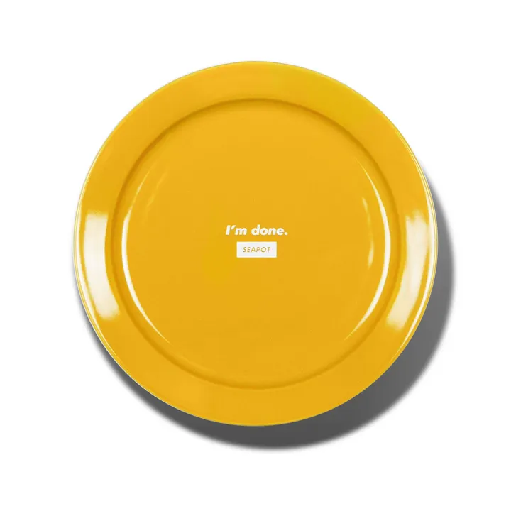 器を手にとった時に馴染むシャープで美しい曲線。 釉薬の艶感とそれぞれの色は、毎日の食卓やおやつタイムに彩りを与えてくれます。 「Plate」は、カレーやパスタ、肉料理、魚料理などを盛り付けるのに最適なサイズ。 サラダ&ライスなど、ワンプレートとしても使えるオールマイティな1枚です。 「I'm done.」とは、家族や友人との食事で「ごちそうさまでした!」とカジュアルに使う表現を意味します。 楽しい食事を終えて、お皿から出てくるこの意味を見るとお腹も心もいっぱいに♪ 器の裏面には「SEAPOT」のロゴを配置しています。