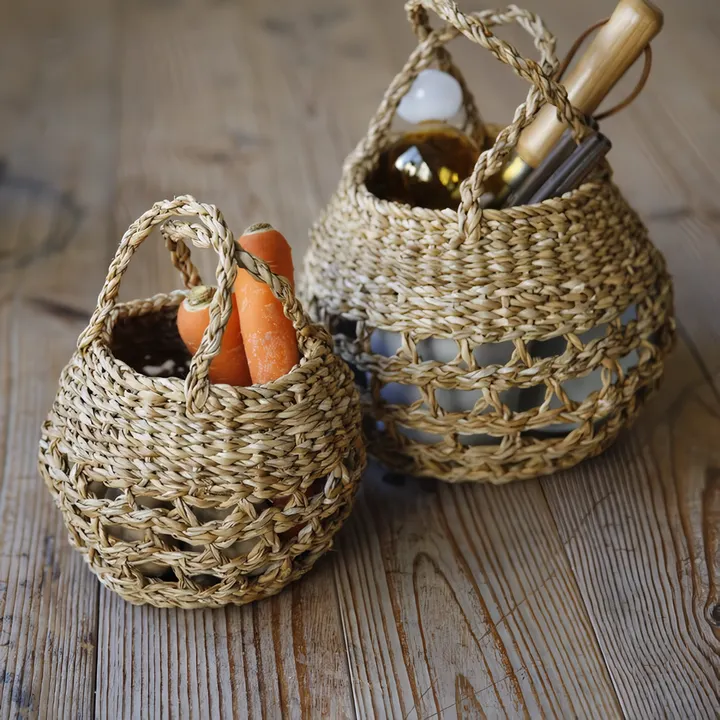 一つ一つ職人の手で丁寧に編み上げられたバスケット。 耐久性と自然な風合いが特徴のシーグラスは、涼しげで軽やかな印象を持ちながらも、しっかりとした丈夫さがあります。 透かし編みが施されており、編み目の間から光や風が優しく通り抜けるデザインが魅力。 ナチュラルな素材感と手作業の温もりが感じられる仕上がりで、どんなインテリアにも溶け込みます。 持ち手付きで様々なアイテムのストッカーとしても活躍します。 ガーデニングの道具を収納したり、玄関周りのアイテムを収納したりとシーズンを問わず長く愛用していただけます。