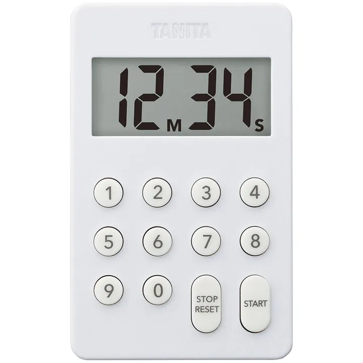 主張しすぎないデザインで、キッチンやお部屋の雰囲気を壊しません。10キーで直感的に操作ができ、簡単にアラームを設定可能です。マグネットとストラップ穴付きなので、場所を取らずすっきり収納ができます。
