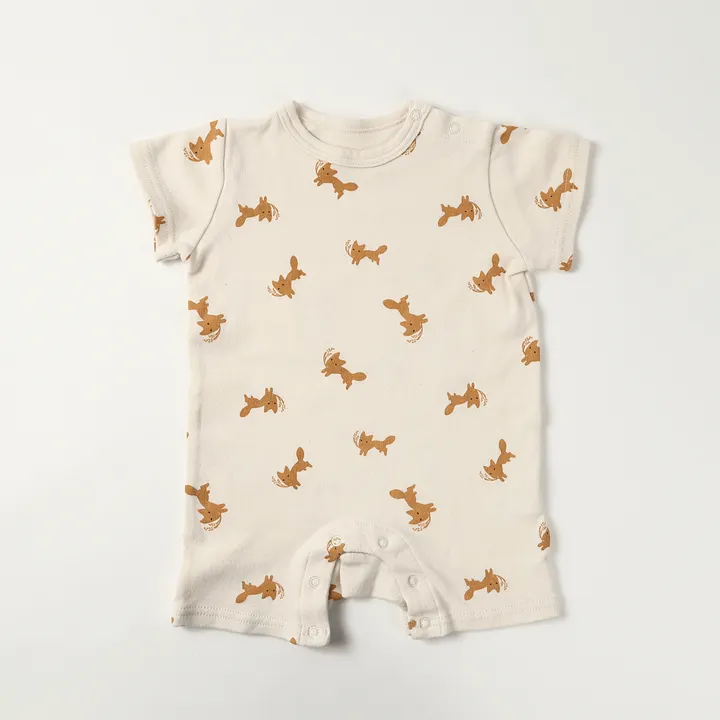 半袖プリントロンパース (キツネ柄)アイボリー/ 12m,70cm