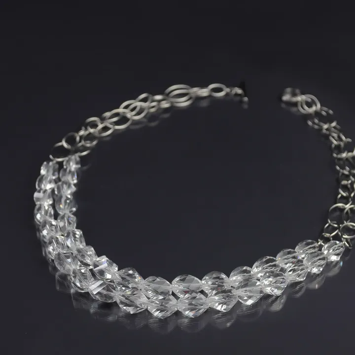 ツイストカットクォーツが贅沢に連なった2WAYネックレス。 2連のショートネックレス、留め具を外すとロングネックレスとしてもお使いいただける仕様になっているのでアレンジが楽しめます。存在感のあるクォーツのボリューム感、サイドからトップに向けて石の大きさのグラデーションが流れるようなツイストカットなので、ボリューム感の中にも軽やかで涼しげな印象を与えます。 ※天然石を使用しているため、自然のクラックやインクルージョンが見られる場合があります。 ※モニターの明るさなどによって実際の色と差が出る事があります。 ※ジュエリーBOXおよびその他付属品に多少のキズが見られる場合がございますが、こちらは不良の対象外となります。またリニューアルに伴い画像のものと異なる場合がございます。予めご了承くださいませ。 ボックス付き 日本発のブランド ― anq. / アンク ― 様々な分野を学んできたクリエイターたちで構成されたデザインチーム。「可能性を秘めたもの」をコンセプトに女性の好奇心、探求心、遊び心をくすぐるようなジュエリーを提案しています。メイドインジャパンにこだわったジュエリーを、銀座のアトリエで一つ一つ制作しています。