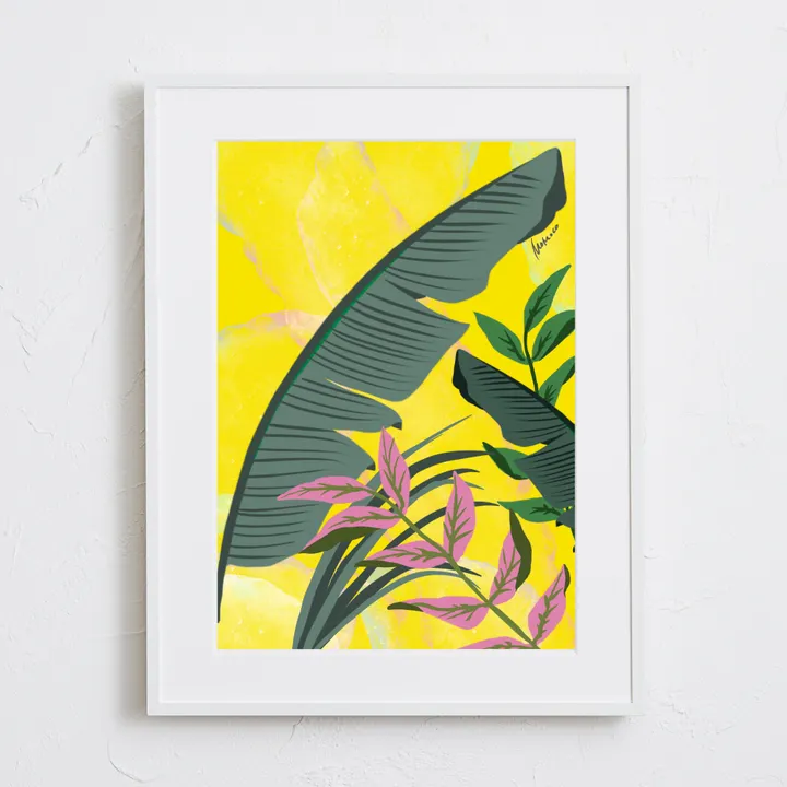 【現代アートポスター】ボタニカル 観葉植物 ペインティング イエローyellow イラスト A4(S) フレームセット:白 29.4×38.4cm