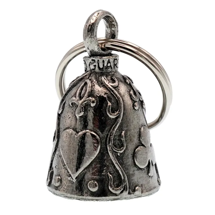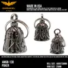 アメリカ製ガーディアンベル社製ガーディアンベルです。 MADE IN USA アメリカ製 交通安全 魔除け 御守り ガーディアンベル アメリカのライダーの間には、事故や、転倒の原因は「道路にひそむ悪魔」によるいたずらだという伝説があります。悪魔は走る者に悪戯やトラブルを運んできます。このベルは美しい音色で悪魔たちを追い払うと言われ愛されています。そんな悪魔のいたずらを防ぎ、御守りとなるのが、守護者のベルという意味を持つガーディアンベル。 日本でも鈴の音(ね)は神道では魔除けの音と言われています。ピューター製の鈴でいい音色でガーディアンベルはデザインも様々あります。 またガーディアンベルにまつわる伝説として、プレゼントとして送られたベルの効果は、自分で手に入れたものの2倍になると言われています。 それゆえに彼氏・彼女・友達・家族へのプレゼントとしての人気も非常に高まっています。 シルバーアクセサリーのようにおしゃれに装着できて素敵な音色を奏でるガーディアンベル。 バイカー以外にも自転車や旅・交通安全のお守りとしてお使いいただけます。 カバン・ランドセル・キーホルダー・ペットの首輪等に付けてお使いください!! ※タイラップ等でバイクのフレームにも簡単に取り付けできます。 アメリカンモデルだけではなく、旧車ファン、レプリカライダーまで、さらにバイクだけでなく、自転車や車にもピッタリな御守りとなっています。 アクセサリーとしても人気で、アイディア次第で車体だけでなく、キーホルダーや鞄など、どこにでも付けておしゃれに楽しめます。