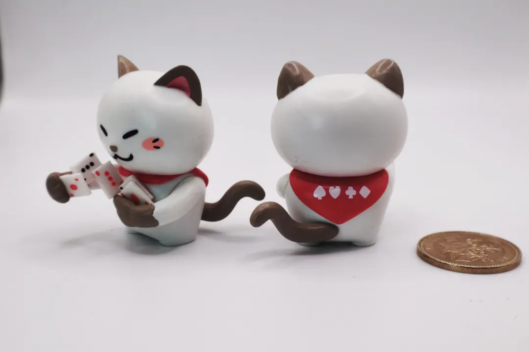 カーディストリーというトランプの分野をモデルにした、世界初のフィギュアです。 ペットとして大人気のねこをモデルとしており、 プロのデザイナーによる可愛いキャラクターデザインです。 高さ5cmの手乗りサイズで、デスク周りや棚などインテリアにも最適です。 また、インスタ等で流行している「ぬい撮り」、「フィギュア撮り」の文化とも相性抜群です。 可愛いグッズやちょっと個性的なインテリアをお探しの方に特におすすめです。 ・フィギュアはOPP包装で外箱が付属します ・メッセージ付きの台紙が付属しキャラクターと感情的につながれます ・台紙のQRコードにて日本最高峰マジシャンアルスによるカーディストリー解説動画が見れます (youtube、本人・チャンネル所有者の許可取得済み)