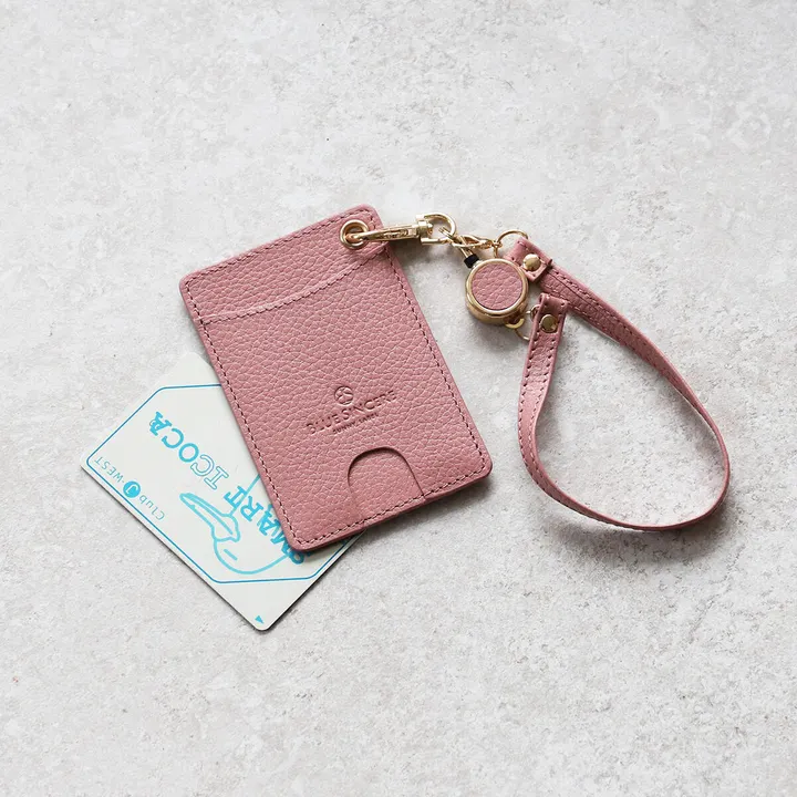【薄型リール付きパスケース】 本革 コンパクト定期入れ 軽量 スリム 二枚収納 / PC3 スワニーピンク