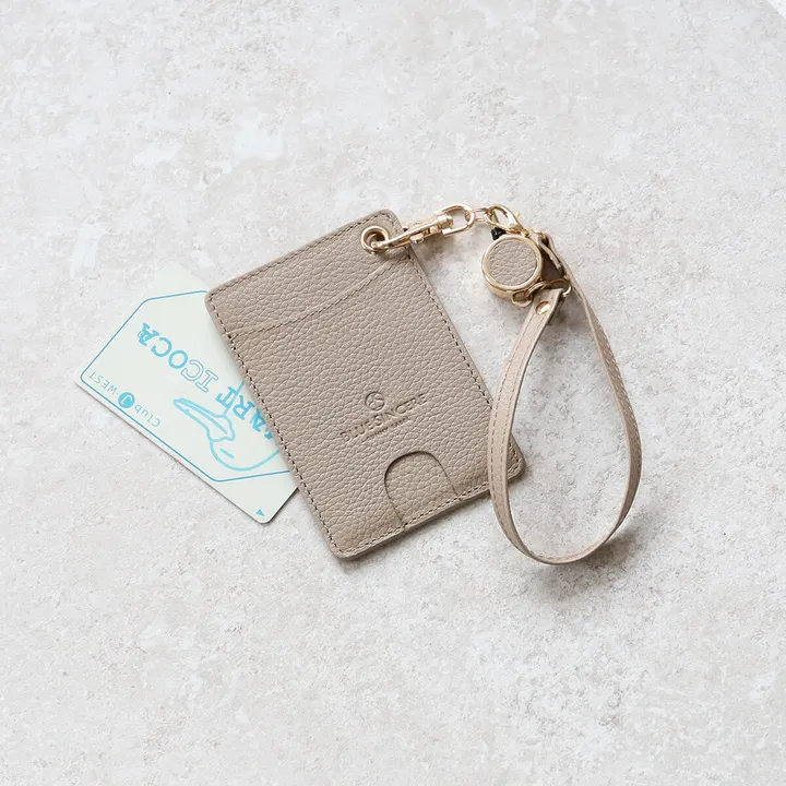 【薄型リール付きパスケース】 本革 コンパクト定期入れ 軽量 スリム 二枚収納 / PC3 グレージュ