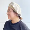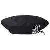 コットン素材のシンプルなベレー帽。SLの文字をモチーフとしたブローチ付き。アクセントにドローコードのサイズ調整をつけています。