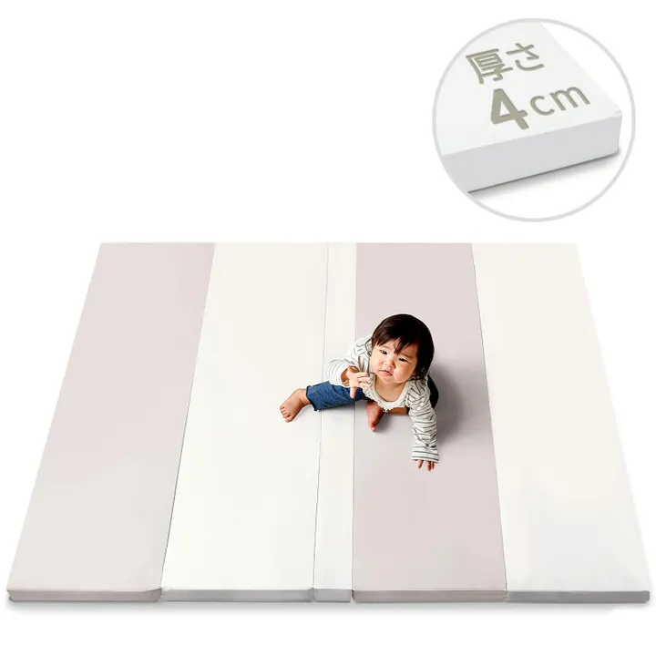 \おうち遊びをもっと楽しく快適に/ 飛び跳ねても、走り回ってもいいんだよ♪ ”みんなにうれしいEPE素材って?” 軽量で持ち運びやすく、衝撃緩和に優れた クッション性の高い素材です。 もちろん、防音効果も抜群! 気密性が高いので、寒さからの底冷えや、 じめじめ湿気からも守ってくれます◎ 厚さ4cmのプレイマットで、 ドタバタ足音をしっかり防音。 おもちゃの落下音もカバー! 折りたたみ式なので、使わない時は コンパクトに収納できるのも嬉しい◎ お部屋に馴染むやさしいカラーで、 子供部屋にはもちろん、 リビングにもピッタリです。 『おもいっきり遊べてうれしい』 『お家のキズ汚れや子供のケガ防止にうれしい』 ”家族みんなの毎日が、笑顔であふれますように” そんな想いのこもった折りたたみプレイマットです。