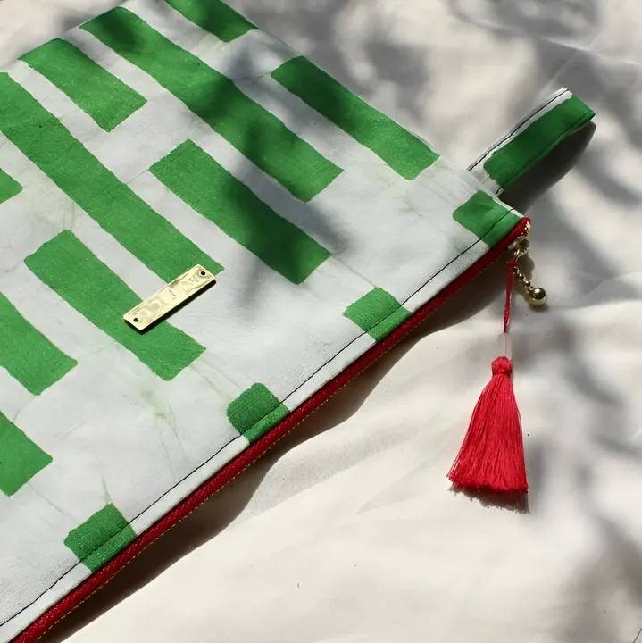 手染めバティック(ろうけつ染め) - Batik flat pouch 萌黄002