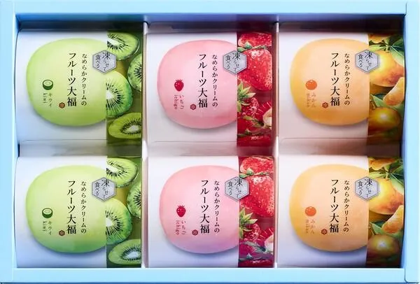 厳選したフルールとコクのあるクリームを、もちもちのお餅で包み込んだ、甘酸っぱく、クリーミーな味わい。 【内容】 いちご  99g×2個 みかん  99g×2個 キウイ  99g×2個 【必ずご確認下さい】 ※メーカー直送のみの対応となります。(送料込み・1ケースから直送可能) ※<中島大祥堂・直送商品>のみでご注文をお願いいたします。<中島大祥堂・直送商品>以外の商品との混載発注は出来ません。 ※北海道・沖縄離島等には発送が出来ません。ご了承ください。 ※通常、ご注文を頂いてから1週間程度でのお届けですが、大型連休・年末年始または天候の影響により1週間以上かかる可能性がございます。その際は、改めてご連絡いたします。 ※包装紙なし