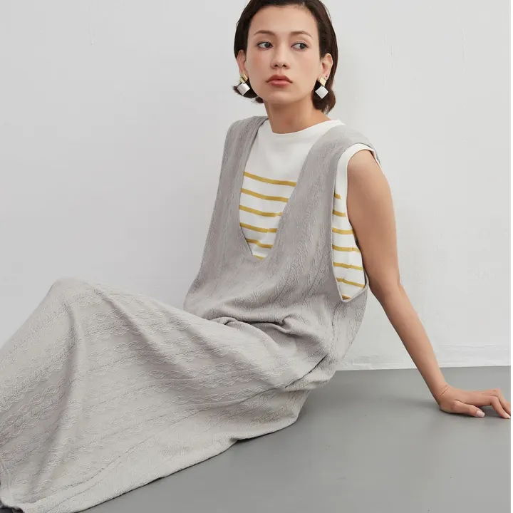 KNXO423-ケーブルニット風・カットソージャンスカ・1年中使えるワンピース・レイヤード定番 GRAY/FREE