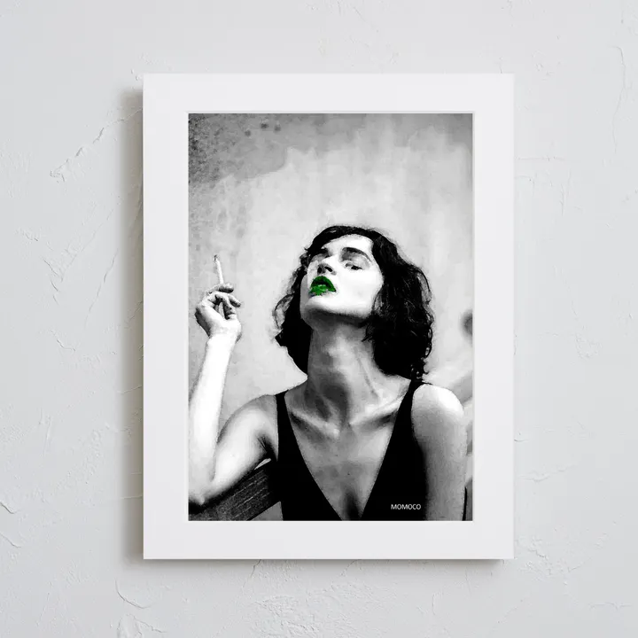 【現代アートポスター】モノトーン白黒 緑色の唇 かっこいい女性 A4(S) 28.8×37.8cm(ポスターのみ)