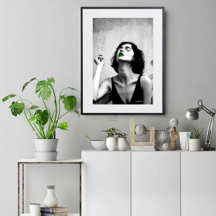 アーティスト -PROFILE- MOMOCO(モモコ) 「色」をこよなく愛する画家、ライブペインター。 躍動感あるアートにも関わらず、服を一切汚さず短時間で音楽と同時に描き上げる。そのパフォーマンスと巨大アートは観る人を魅了する。 前職は某有名ファッションブランドにてデザイナーとして活躍。その経験の中で養われた「色とデザイン」の絶妙なバランスを活かしつつ、トレンドを取り入れ進化し続けるアートを目指す!国内外問わず、精力的にアートと向き合い発信を続けている。 【作品について】 白黒に浮かび上がる緑色の唇がアクセント!クールな女性が印象的 スタイリッシュで都会的なインテリアにおすすめ 作品名:monster lips 手法:デジタル、イラスト ペーパー:高品質半光沢紙 マットカラー:白 マット*:DXホワイト芯 100%バージンパルプ/PH7・中性紙(2mm厚) ※全てのアートにマットがつきます フレームカラー:黒、白、無垢(3種類から選択) ※マット付のため通常とはフレームサイズが異なる規格となります。 【マット*とは?】 アートポスターの周りに挟んだ厚紙の事。 マットを使わない時に比べ余白により広がりが生まれ、作品の新たな一面を引き出せ作品の見栄えがグッと良くなります。また、額縁のガラス面と作品が直接触れたままにしておくと、くっついて作品を傷つけることがあります。マットを使用することでガラスと作品の間に空間ができ、作品を保護することができます。ブランドコンセプトにより全てのアートにマットがつきます。 ー ファッションのようにアートを ー 私達が掲げるコンセプトです! 毎日着替えるファッションの様に、アートも気軽に飾り変えて欲しい... 一旦飾り終えたアートにも光を当ててほしい... ポスター単体、またはリピートで中身だけのポスターを購入された方に"専用のハンガー"をセットでお届け。 「今までに無い!新しいアートの飾り方を提案」 飾る事がなくなった前のアートをハンガーにかけて洋服と一緒にかけてもらう。 その日の気分や、モチベーションですぐに取り換えられる様に。 もちろん、魅せる収納としても今までにないおすすめの飾り方です。