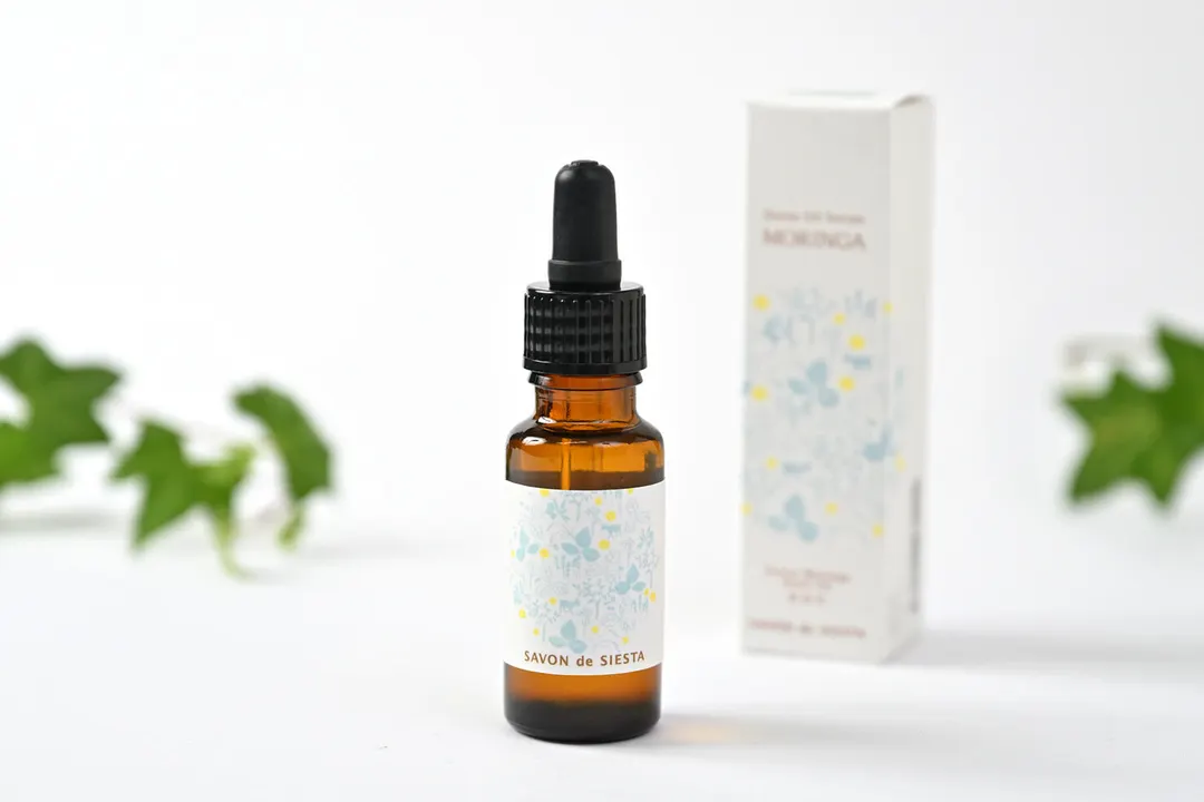 肌を柔らかくハリと潤いを与える成分を含むモリンガオイル。お肌の乾燥や、年齢を重ねてくるにつれ感じる肌のハリの弱まりにお悩みの方におすすめのオイルです。化粧水で整えたお肌にお使いください。 ●肌の美活力アップ!モリンガオイル モリンガは、インドの伝統医学『アーユルヴェーダ』では、“奇跡の木” “薬箱の木”と呼ばれ、300種類もの病気を予防するハーブとして使用されてきた植物です。 その種子から採れるモリンガオイルは、日本ではまだあまりなじみがないかもしれませんが、クレオパトラも愛用していたと言われるくらい歴史のあるオイルで、ヨーロッパでは昔から美容クリームの材料として使われてきた高級オイルでもあります。 そのモリンガオイルは、人の肌組成に近い成分を多く含み、肌なじみがとても良いことが特徴。肌の奥まで栄養を届け、やわらかくするだけではなく、肌をなめらかに保つ成分も含まれているので、肌にハリと潤いを与えてくれ、女性のスキンケアにぴったりです。 ●作り手の顔が分かるモリガンを使用 美肌効果の高さから、注目されつつあるモリンガオイル。 遺伝子組み換えのモリンガを使ったオイルも増えていますが、SAVON de SIETSAで用いるモリンガオイルは、フィリピン・イロコスノルテ「Joy of Health農園」で育った在来種のイロコスモリンガ。遺伝子組み換えのものと比べ、肌にハリや潤いを与えるベヘン酸の含有量が豊富です。 さらにオイルの抽出方法も、有機溶剤抽出を行わずに、種の殻をむいて取り出したモリンガの実だけを低温圧搾。しかも、殻を取るのは、純度を高めるため一粒一粒丁寧に手作業で行っています。 売上の一部をフィリピン「Joy of Health農園」のモリンガ植林に使うことで地球環境にも配慮しています。 \お客様からの感想/ 以前は様々なブランドの美容液を使ってきましたが、この数年はこちら一筋です。 化粧水の後、ハンドプレスしてお肌の内側に浸透するように使ってますが、しっとり潤います。