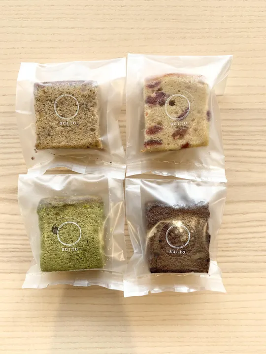 sui:toの焼き菓子は素材本来の風味を大切に、保存料や着色料などを使用しておりません。出来るだけ自然な素材を厳選し、自社工房で一つ一つ丁寧にお作りしています。