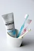 歯ブラシたてとして、歯ブラシについた余分な水分を吸水し発散することで、菌の繁殖を防ぎいつでも清潔な環境を保持することができます。 歯磨き粉や人数分の歯ブラシを収納できるゆとりのある口径のコップ型になっておりますので、ご家族でご使用いただけます。