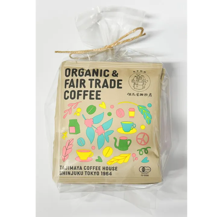 昭和20年に東京 新宿で創業。 但馬屋珈琲店の本格コーヒーをお手軽にお楽しみください。 有機栽培されたコーヒー生豆をダイレクトフェアトレードプログラムによって仕入れ、直火式の焙煎機で深煎り焙煎。 ビターチョコレートのような甘味とほろ苦さ、ローストナッツのような香りが特長のコーヒーです。 【簡便性の高い、個包装(1杯タイプ)のドリップバッグコーヒー】 ほっとひと息つきたいときに。 時間のない平日の朝や仕事の合間・旅行先など、時間と場所を選ばずにいつでもお店の本格コーヒーがお楽しみいただけます。