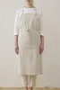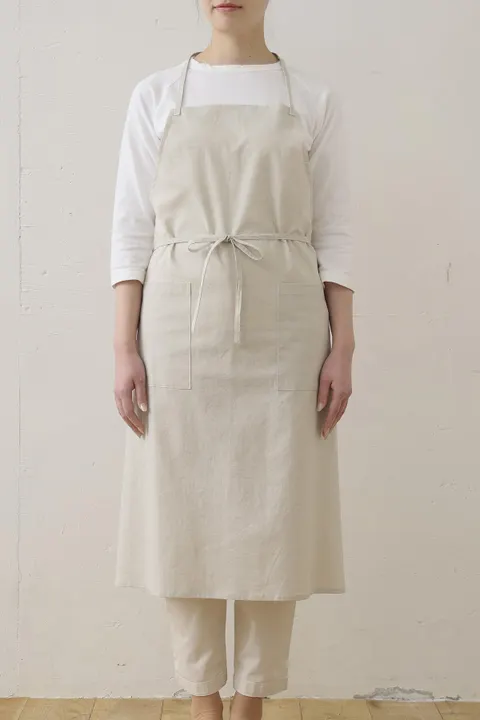 シンプルでナチュラル 素材感を味わうシックなロング丈エプロンです。