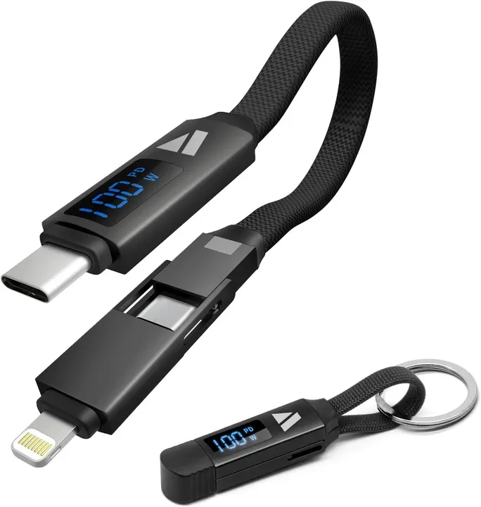 SUPERV cc16 3-in-1 キーリング型 充電ケーブル 14cm | 急速充電 USB-C to Type-C / ライトニング 14cm (サンプル) ブラック