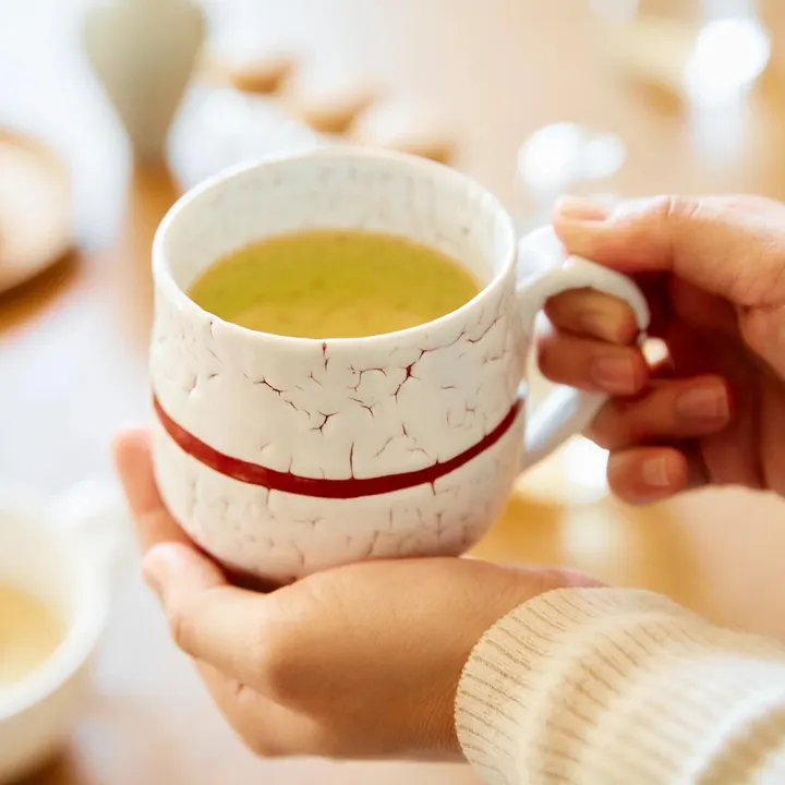 口当たりがよく飲みやすいと好評のマグカップです。 太く持ちやすい持ち手。内側が白色で珈琲の色が映えます。 紅茶にもお使いいただける人気のマグカップです。 龍の爪痕のような梅花皮(ちぢれ模様)はそれぞれに違い、同じものは出来ません またサイズや重量も個体差がある事をご了承ください ※電子レンジ・オーブン・食洗機 お使いいただけます