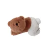 醤油くまお馴染み、寝そべりポーズのキーホルダーできました。 心やさしい、うっかり屋さんのしろくま。 醤油醸造所に修行に来たものの、うっかりミスを連発してしまう毎日。ついに先日、ぼーっとしていたら醤油樽に上半身が浸かってしまい、茶色く染まってしまいました。 とほほ・・・。 うっかり醤油にドボンした直後の「とほほ」な姿をそのままキーホルダーに。 見上げた顔からより一層哀愁を感じます。 ↓マイペースにゆるーく更新中 Instagram ID:@syoyukuma 応援よろしくお願いします!