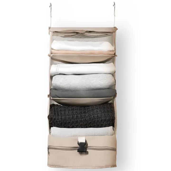 圧縮吊り下げトラベルポーチ Lサイズ ミルクティーベージュ