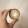『 いつでもどこでも、星空のきらめきを持ち歩く 』 火も電気も使わず、アロマオイルをひと滴。 忙しい日々に、どこでも星空のようなきらめきを感じられる、携帯できるアロマストーン。 ポーチにすっと収まる缶に入ったお星さまで、外出先でも香りとともに静かな時間と深呼吸を。 星の形に彫られた凹みに、精油を垂らしてお使いください。 【 HOW TO 】 1〜2滴の精油をストーンに垂らすと、 半径約1mほどの空間にやわらかな香りが広がります。 香りの持続は1〜3日ほど(湿度や精油の種類によって異なります)。 香りが薄くなったら、また少しずつ垂らしてお使いください。 使わない時は蓋を閉めておくと、香りを閉じ込めることができ、より香りが長続きします。 数日で香りが消えるので、ひとつのストーンで複数の香りをお楽しみいただけます。 【 DETAIL 】 小さなお星さまを、上品なゴールドの缶に閉じ込めました。 中を開けると、お星さまが顔を覗かせます。 星の形に沿ってキラキラ輝くゴールドカラーを手塗りしています。 精油はお星さまに滴下してご使用ください。 小さなカバンやポーチに入れやすいモバイルアロマストーンです。 ストーンは缶に接着されています。 細かな気泡の抜けた跡ができやすいデザインです。 ゴールドカラーで縁どりし気になりにくいよう工夫しておりますが、予めご了承ください。 【 アロマストーンとは? 】 精油を滴下するだけで香りを楽しめる芳香器。 半径1m程度の空間でふわっと優しく香ります。 電気・火・水を使わないためエコで、 デスクやベッドサイドでも気軽に使うことができます。 お手入れの必要もありません。 香りが充満しないので、 強い香りが苦手な方にもおすすめです。 また、香りは1日〜数日程度で消えてゆきます。 そのため1つのアロマストーンで色々な香りをお楽しみいただけます。 【 SPEC 】 材質:石膏(プラスター) サイズ:直径5.2cm×高さ2.5cm(缶) ハンドメイド/日本製 【 おすすめの使い方 】 ✔︎仕事中のデスクで、気持ちをリセットしたい時 ✔︎ベッドサイドで眠る前に深呼吸したい夜 ✔︎出張・旅行先で、いつもの香りを感じたい時 ✔︎忙しい日々の中で、ほんの数分、自分に戻る時間を持ちたい時