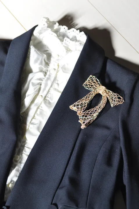 フォーマルでも、ラフな装いでもOKなリボンのコサージュ。卒業式、入学式、パーティーにはもちろん、ラフなニットやTシャツにも合わせて付けられるデザインです。 何度あっても良いお祝い事にお選び頂ける“リボン”モチーフコサージュは意外に少なく、他には無いデザインで、お祝いや式が終わっても、ファッションのスパイスに! 水引ならではのハリとコシで、ボリュームのある形状。 少し潰れてしまっても、指で戻せばふっくらとした形に戻せます。 少しの雨に濡れても大丈夫。乾いたタオルで軽く拭いてください。 水引は、芯が紙で出来ているのでボリュームのある形状でも軽く、お洋服に負担がかかりにくいのが特徴です。 コサージュを綺麗に保管して頂けるよう、ケースにお入れ致します。 時によっては、画像5枚目のケースとは違うデザインのケースになる場合もございます。予めご了承ください。 ◆素材 水引、真鍮ブローチ金具(ゴールド) ◆サイズ展開2種 【L】縦横約10センチ 【S】縦横約8センチ ◆色展開5色 ゴールド ベージュ ネイビー ピンク ミックス サイズ、お色共にオーダー可能です。 お問合せからメッセージをお送りください。 ★ご入用の日が迫っている場合でも出来る限りご対応させて頂きます。★