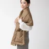 しっとりと滑らかな質感にこだわった、キルティングショール。大判サイズですが、軽くて暖かく、ストレスなくコーディネートしていただけます。 スナップボタンで簡単に止められるので、するっと肩から落ちる心配も少ないです。ちょっとしたアウター代わりにもなります。 ショールとしてだけではなく、オフィスでのひざ掛けにも応用できて便利なアイテムです。 キルティングは2枚の布の間に綿を挟み、模様のステッチをかけて仕上げていきます。保温性が高いだけでなく、生地を重ねることで生まれる耐久性の良さも魅力の一つです。元々は防寒を目的に作られた素材ですが、昨今では機能面だけでなく、使用する素材や組み合わせ、ステッチ模様などのファッション性が注目されています。 羽織にもひざ掛けにも使用でき、暖かさとおしゃれさを兼ね備えたアイテムです。職場やご自宅で1枚あるととても便利です。年齢・性別問わずご使用頂けます。