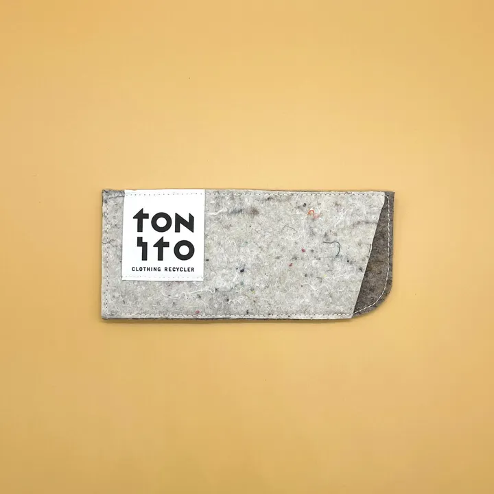 3色展開のFELT SLIM CASE 雑多の廃棄衣料をフェルトにしています。 メガネやサングラス、ステーショナリーなど、あなたの身近なアイテムをそっと忍ばすことが できるスリムサイズの収納ケースです。ギフトとしても喜んでいただける可愛い見た目に仕上がりました。 反毛された廃棄衣料がフェルト上に、ネップ(小さな繊維片)となってランダムに現れます。 そのため、生地感は凹凸感があり繊維の質感も楽しむことができます。 また、ケース自体の重さはとても軽量です。 品番: TNT-FLT06-01/02/03 Size: 18cm × 18cm Color: orange × orange, white × mocha , mocha × charcoal Fabric : Recycle Fiber 60%、 Recycle Polyester 20% Low melting polyester 20% Made in Japan ※長時間日光に当てると変色や色移りの原因になるため、ご注意ください。 ※火の近くには置かないでください。 ※水に触れると表面の加工が劣化しやすい為、洗濯はお控え下さい。