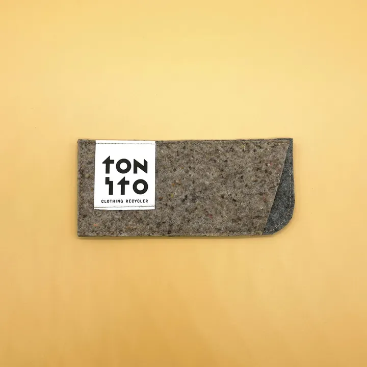 3色展開のFELT SLIM CASE 雑多の廃棄衣料をフェルトにしています。 メガネやサングラス、ステーショナリーなど、あなたの身近なアイテムをそっと忍ばすことが できるスリムサイズの収納ケースです。ギフトとしても喜んでいただける可愛い見た目に仕上がりました。 反毛された廃棄衣料がフェルト上に、ネップ(小さな繊維片)となってランダムに現れます。 そのため、生地感は凹凸感があり繊維の質感も楽しむことができます。 また、ケース自体の重さはとても軽量です。 品番: TNT-FLT06-01/02/03 Size: 18cm × 18cm Color: orange × orange, white × mocha , mocha × charcoal Fabric : Recycle Fiber 60%、 Recycle Polyester 20% Low melting polyester 20% Made in Japan ※長時間日光に当てると変色や色移りの原因になるため、ご注意ください。 ※火の近くには置かないでください。 ※水に触れると表面の加工が劣化しやすい為、洗濯はお控え下さい。