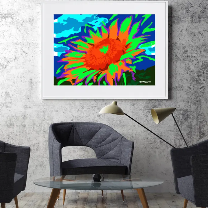 アーティスト -PROFILE- MOMOCO(モモコ) 「色」をこよなく愛する画家、ライブペインター。 躍動感あるアートにも関わらず、服を一切汚さず短時間で音楽と同時に描き上げる。そのパフォーマンスと巨大アートは観る人を魅了する。 前職は某有名ファッションブランドにてデザイナーとして活躍。その経験の中で養われた「色とデザイン」の絶妙なバランスを活かしつつ、トレンドを取り入れ進化し続けるアートを目指す!国内外問わず、精力的にアートと向き合い発信を続けている。 【作品について】 ビタミンカラーが目を引く!ポップなデザイン 眺めるだけで日々の活力になるような、そんな元気をもらえる素敵な作品 子供部屋や、キッズルームにもおすすめです 作品名:himawari Ⅱ 手法:デジタル、イラスト ペーパー:高品質半光沢紙 マットカラー:白 マット*:DXホワイト芯 100%バージンパルプ/PH7・中性紙(2mm厚) ※全てのアートにマットがつきます フレームカラー:黒、白、無垢(3種類から選択) ※マット付のため通常とはフレームサイズが異なる規格となります。 【マット*とは?】 アートポスターの周りに挟んだ厚紙の事。 マットを使わない時に比べ余白により広がりが生まれ、作品の新たな一面を引き出せ作品の見栄えがグッと良くなります。また、額縁のガラス面と作品が直接触れたままにしておくと、くっついて作品を傷つけることがあります。マットを使用することでガラスと作品の間に空間ができ、作品を保護することができます。ブランドコンセプトにより全てのアートにマットがつきます。 ー ファッションのようにアートを ー 私達が掲げるコンセプトです! 毎日着替えるファッションの様に、アートも気軽に飾り変えて欲しい... 一旦飾り終えたアートにも光を当ててほしい... ポスター単体、またはリピートで中身だけのポスターを購入された方に"専用のハンガー"をセットでお届け。 「今までに無い!新しいアートの飾り方を提案」 飾る事がなくなった前のアートをハンガーにかけて洋服と一緒にかけてもらう。 その日の気分や、モチベーションですぐに取り換えられる様に。 もちろん、魅せる収納としても今までにないおすすめの飾り方です。