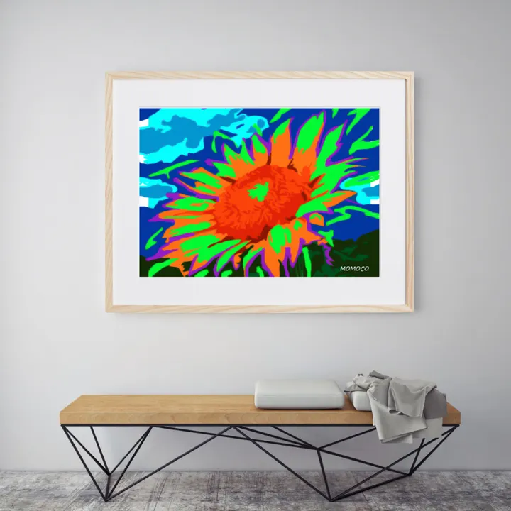 アーティスト -PROFILE- MOMOCO(モモコ) 「色」をこよなく愛する画家、ライブペインター。 躍動感あるアートにも関わらず、服を一切汚さず短時間で音楽と同時に描き上げる。そのパフォーマンスと巨大アートは観る人を魅了する。 前職は某有名ファッションブランドにてデザイナーとして活躍。その経験の中で養われた「色とデザイン」の絶妙なバランスを活かしつつ、トレンドを取り入れ進化し続けるアートを目指す!国内外問わず、精力的にアートと向き合い発信を続けている。 【作品について】 ビタミンカラーが目を引く!ポップなデザイン 眺めるだけで日々の活力になるような、そんな元気をもらえる素敵な作品 子供部屋や、キッズルームにもおすすめです 作品名:himawari Ⅱ 手法:デジタル、イラスト ペーパー:高品質半光沢紙 マットカラー:白 マット*:DXホワイト芯 100%バージンパルプ/PH7・中性紙(2mm厚) ※全てのアートにマットがつきます フレームカラー:黒、白、無垢(3種類から選択) ※マット付のため通常とはフレームサイズが異なる規格となります。 【マット*とは?】 アートポスターの周りに挟んだ厚紙の事。 マットを使わない時に比べ余白により広がりが生まれ、作品の新たな一面を引き出せ作品の見栄えがグッと良くなります。また、額縁のガラス面と作品が直接触れたままにしておくと、くっついて作品を傷つけることがあります。マットを使用することでガラスと作品の間に空間ができ、作品を保護することができます。ブランドコンセプトにより全てのアートにマットがつきます。 ー ファッションのようにアートを ー 私達が掲げるコンセプトです! 毎日着替えるファッションの様に、アートも気軽に飾り変えて欲しい... 一旦飾り終えたアートにも光を当ててほしい... ポスター単体、またはリピートで中身だけのポスターを購入された方に"専用のハンガー"をセットでお届け。 「今までに無い!新しいアートの飾り方を提案」 飾る事がなくなった前のアートをハンガーにかけて洋服と一緒にかけてもらう。 その日の気分や、モチベーションですぐに取り換えられる様に。 もちろん、魅せる収納としても今までにないおすすめの飾り方です。