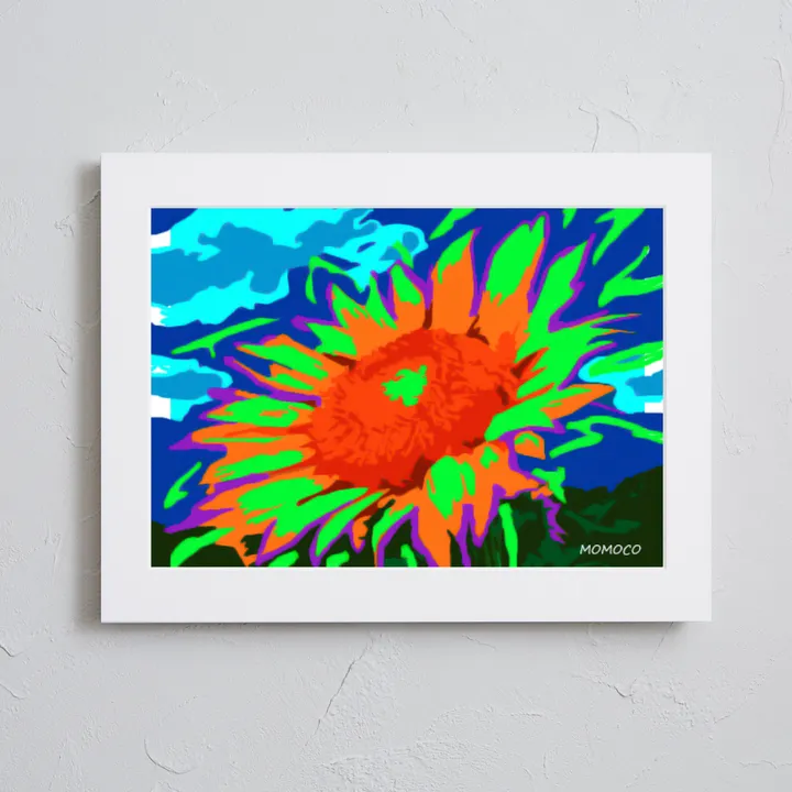 アーティスト -PROFILE- MOMOCO(モモコ) 「色」をこよなく愛する画家、ライブペインター。 躍動感あるアートにも関わらず、服を一切汚さず短時間で音楽と同時に描き上げる。そのパフォーマンスと巨大アートは観る人を魅了する。 前職は某有名ファッションブランドにてデザイナーとして活躍。その経験の中で養われた「色とデザイン」の絶妙なバランスを活かしつつ、トレンドを取り入れ進化し続けるアートを目指す!国内外問わず、精力的にアートと向き合い発信を続けている。 【作品について】 ビタミンカラーが目を引く!ポップなデザイン 眺めるだけで日々の活力になるような、そんな元気をもらえる素敵な作品 子供部屋や、キッズルームにもおすすめです 作品名:himawari Ⅱ 手法:デジタル、イラスト ペーパー:高品質半光沢紙 マットカラー:白 マット*:DXホワイト芯 100%バージンパルプ/PH7・中性紙(2mm厚) ※全てのアートにマットがつきます フレームカラー:黒、白、無垢(3種類から選択) ※マット付のため通常とはフレームサイズが異なる規格となります。 【マット*とは?】 アートポスターの周りに挟んだ厚紙の事。 マットを使わない時に比べ余白により広がりが生まれ、作品の新たな一面を引き出せ作品の見栄えがグッと良くなります。また、額縁のガラス面と作品が直接触れたままにしておくと、くっついて作品を傷つけることがあります。マットを使用することでガラスと作品の間に空間ができ、作品を保護することができます。ブランドコンセプトにより全てのアートにマットがつきます。 ー ファッションのようにアートを ー 私達が掲げるコンセプトです! 毎日着替えるファッションの様に、アートも気軽に飾り変えて欲しい... 一旦飾り終えたアートにも光を当ててほしい... ポスター単体、またはリピートで中身だけのポスターを購入された方に"専用のハンガー"をセットでお届け。 「今までに無い!新しいアートの飾り方を提案」 飾る事がなくなった前のアートをハンガーにかけて洋服と一緒にかけてもらう。 その日の気分や、モチベーションですぐに取り換えられる様に。 もちろん、魅せる収納としても今までにないおすすめの飾り方です。