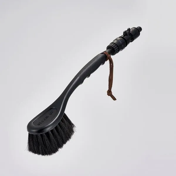 \\オススメPOINT!// ◎ホースリールをガーデニング・園芸用途だけでなく、掃除にも活用できる。 ◎ブラシ中央から水が流れる ▶水を出しながら掃除ができる。 ◎手元で通水・止水の切替可能 ▶蛇口までわざわざ行く必要はなし。 ◎馬毛とPET樹脂を混毛した柔らめ素材 ▶ウッドデッキ、建物外壁、サッシ、車やバイクのホイールなどのお掃除に。 【水を流しながら使用可能】 Royal Gardener's Clubのホースリールに接続し、水を流しながら使用できるブラシ。ブラシ中央部分から水が流れます。ホースリールへはワンタッチで簡単に装着できます。 【やわらかめの材質のブラシ】 馬毛と樹脂を混毛したやわらかめの材質(※1)で傷つけにくく、幅広い用途で使用できるソフトタイプのブラシです。塗装・コーティング剥がれ、傷つきが気になる部分、金属類などへのご利用(※2)に最適です。 【手元で通水・止水が可能】 止水タップ付きコネクターが標準付属。通水・止水が手元で簡単にできます。水道蛇口までわざわざ行く必要がありません。 【スエード紐が付属】 使用後の乾燥や保管時に便利なスエード紐が付属しています。 【推奨使用用途】 ウッドデッキ、建物外壁、サッシ、屋外用テーブル・チェア、自動車・バイクなどのホイール、手すり・フェンスなど金属部、アウトドア用品など。 (※1)「ホースリール用ブラシ」との比較となります (ブラシ部分材質:馬毛30%、PET70% 混毛) (※2) 事前に目立たない場所などでお試し頂いた上でご使用ください。 ※ブラシ部分は、黒・濃茶・白の毛が混合しています。使用当初は毛のちぎれや抜け落ちが出る事がありますが、製品不良ではございません。 ※使用後は必ず乾燥させた上で保管してください。馬毛を使用しているため、ブラシが濡れたまま密閉空間で保管するとカビが発生する恐れがございます。