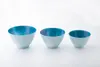 石川県加賀市の冬の景色をモチーフにした蓋付の大きめのお椀。外側は雪景色の白青のグラデーション、内側は川を表す青に日光が差し込んだような紫や緑を加えた変わり塗りです。内外の対照的な色彩で「侘び寂び」を感じることができます。お椀としてみそ汁はもちろん、麺類、お雑煮、アイスクリームも入れるデザートしても良いです。食洗器、電子レンジ対応のプラスチック素地に職人が一つ一つ吹付塗装で塗り重ねられた独特のフォルムで食卓に鮮やかな色彩を放つプロダクトです。