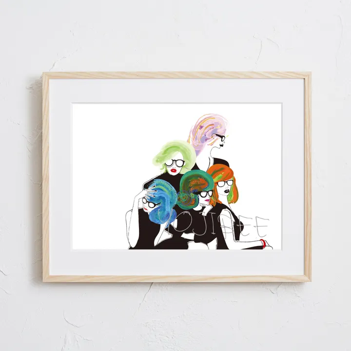 アーティスト -PROFILE- yojibee(ヨジベエ) イラストレーター 服飾デザインを学びファッションイラストをえがく。 女性を中心にいろいろなコトとモノをえがきます。 【作品について】 カラフルな女性たち。個性的。 それぞれのカラーも一緒だとより楽しくなる。 作品名:女友だち 手法:イラスト、デジタル ペーパー:高品質半光沢紙 マットカラー:白 マット*:DXホワイト芯 100%バージンパルプ/PH7・中性紙(2mm厚) ※全てのアートにマットがつきます フレームカラー:黒、白、無垢(3種類から選択) ※マット付のため通常とはフレームサイズが異なる規格となります。 【マット*とは?】 アートポスターの周りに挟んだ厚紙の事。 マットを使わない時に比べ余白により広がりが生まれ、作品の新たな一面を引き出せ作品の見栄えがグッと良くなります。また、額縁のガラス面と作品が直接触れたままにしておくと、くっついて作品を傷つけることがあります。マットを使用することでガラスと作品の間に空間ができ、作品を保護することができます。ブランドコンセプトにより全てのアートにマットがつきます。 ー ファッションのようにアートを ー 私達が掲げるコンセプトです! 毎日着替えるファッションの様に、アートも気軽に飾り変えて欲しい... 一旦飾り終えたアートにも光を当ててほしい... ポスター単体、またはリピートで中身だけのポスターを購入された方に"専用のハンガー"をセットでお届け。 「今までに無い!新しいアートの飾り方を提案」 飾る事がなくなった前のアートをハンガーにかけて洋服と一緒にかけてもらう。 その日の気分や、モチベーションですぐに取り換えられる様に。 もちろん、魅せる収納としても今までにないおすすめの飾り方です。