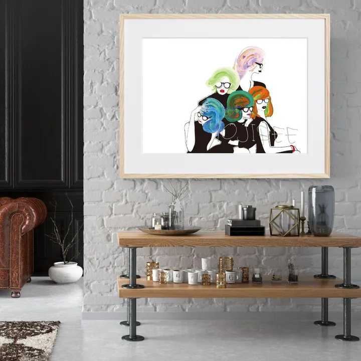 【現代アートポスター】大人女子 女友だち おしゃれイラスト A2(L) フレームセット:無垢 56.1×74.3cm
