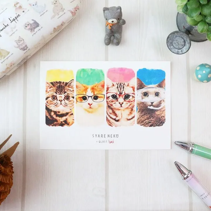 ネコたちがこだわりのアイテムを身につけて おしゃれに大変身した「SYARENEKO」シリーズ。 並べて飾りたくなるポップなカラーのポストカードです。 どの子が一番似合ってる? 【猫】【ねこ】【キャット】【日本製】【新学期】【インバウンド】 Cat Goods ? Kawaii Stationery with Japanese Illustration | Made in Japan