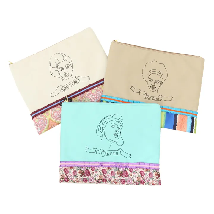 タブレットやラップトップケースとして最適なBigサイズのポーチ。 クッション性のある肉厚な素材感です。 クラッチバッグとしてもピッタリなので旅先のディナーやちょっとしたおでかけにもぜひ連れて行って! 内側2か所オープンポケット付き。 Faceシリーズは、アメリカ(サックス)・ブラジル(ベージュ)・スペイン(アイボリー)とカラーごとに違った国の女性をイメージしたスパイスの効いた個性的なデザイン。 あなたのお気に入りの国や、パーソナリティに近いイメージの国の女性が描かれたデザインをライン使いする楽しさも! ※正規の電子機器ケースではございませんので自己判断の上ご使用ください。